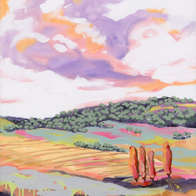 Working from her garden studio in the countryside of Orange, NSW, she is immersed in the ever changing landscape around her - big skies, a wild country garden, wide open spaces.